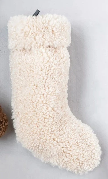 20″H Sherpa Fabric Christmas Stocking, Cream