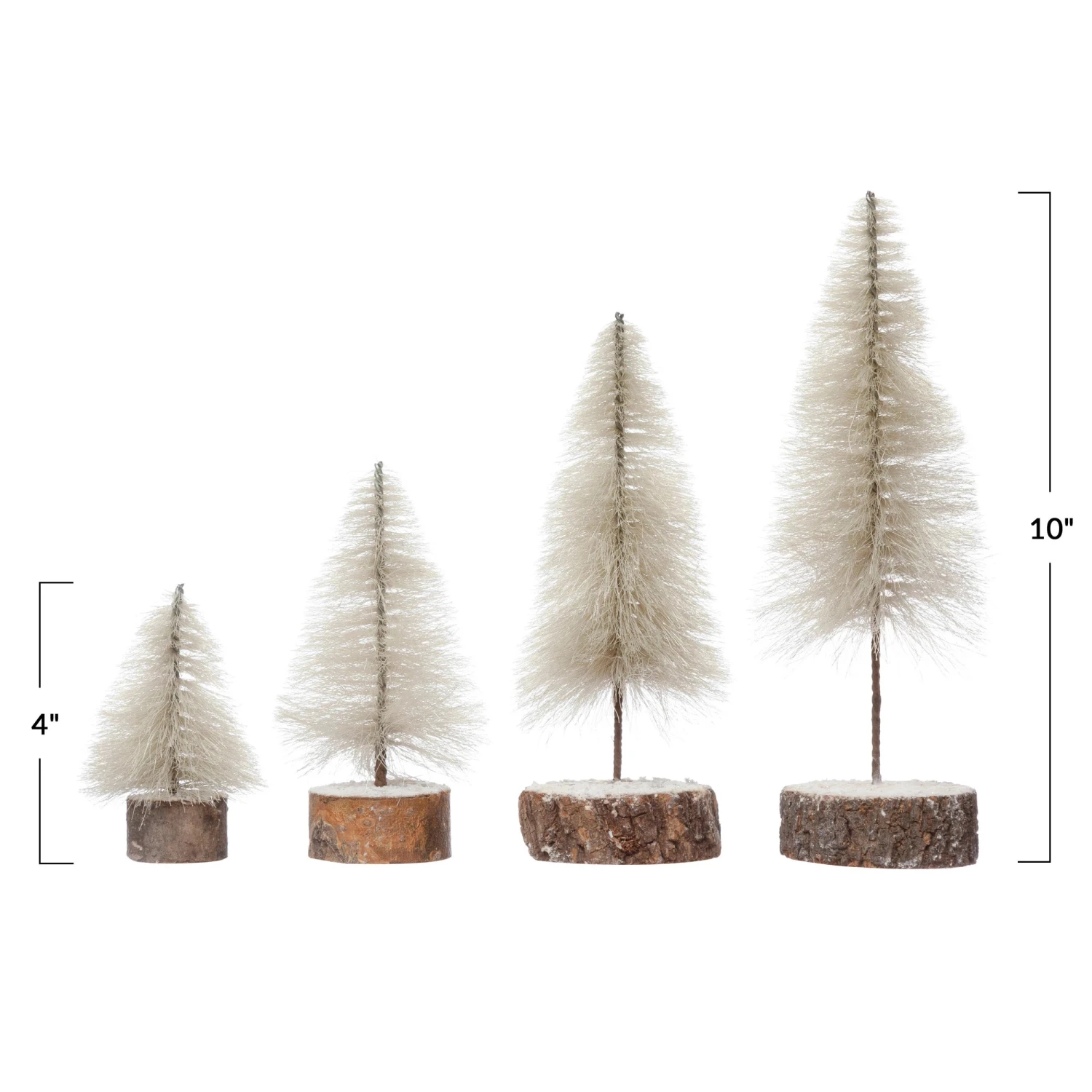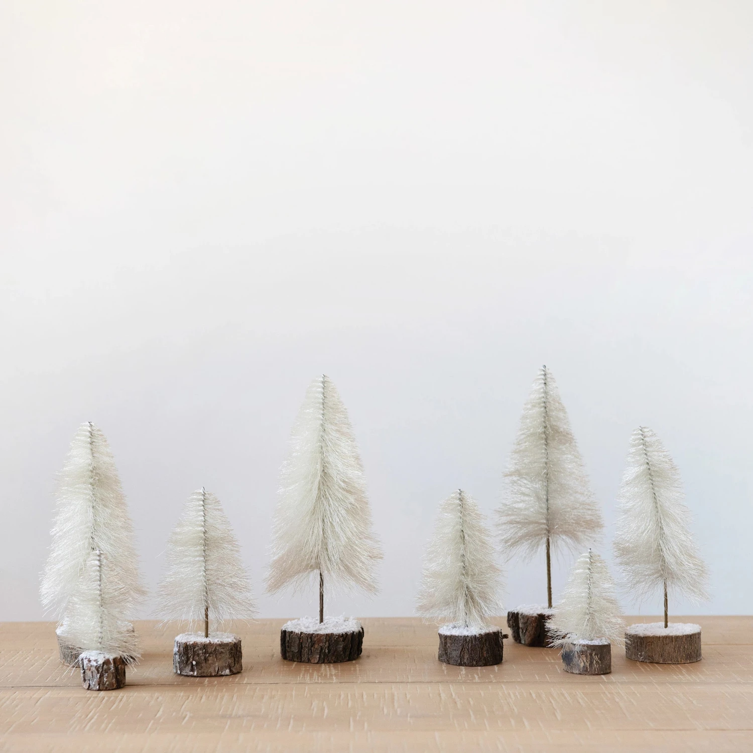 Bottle Brush Tree With Wood Slice Base, Cream, 4 Size Options