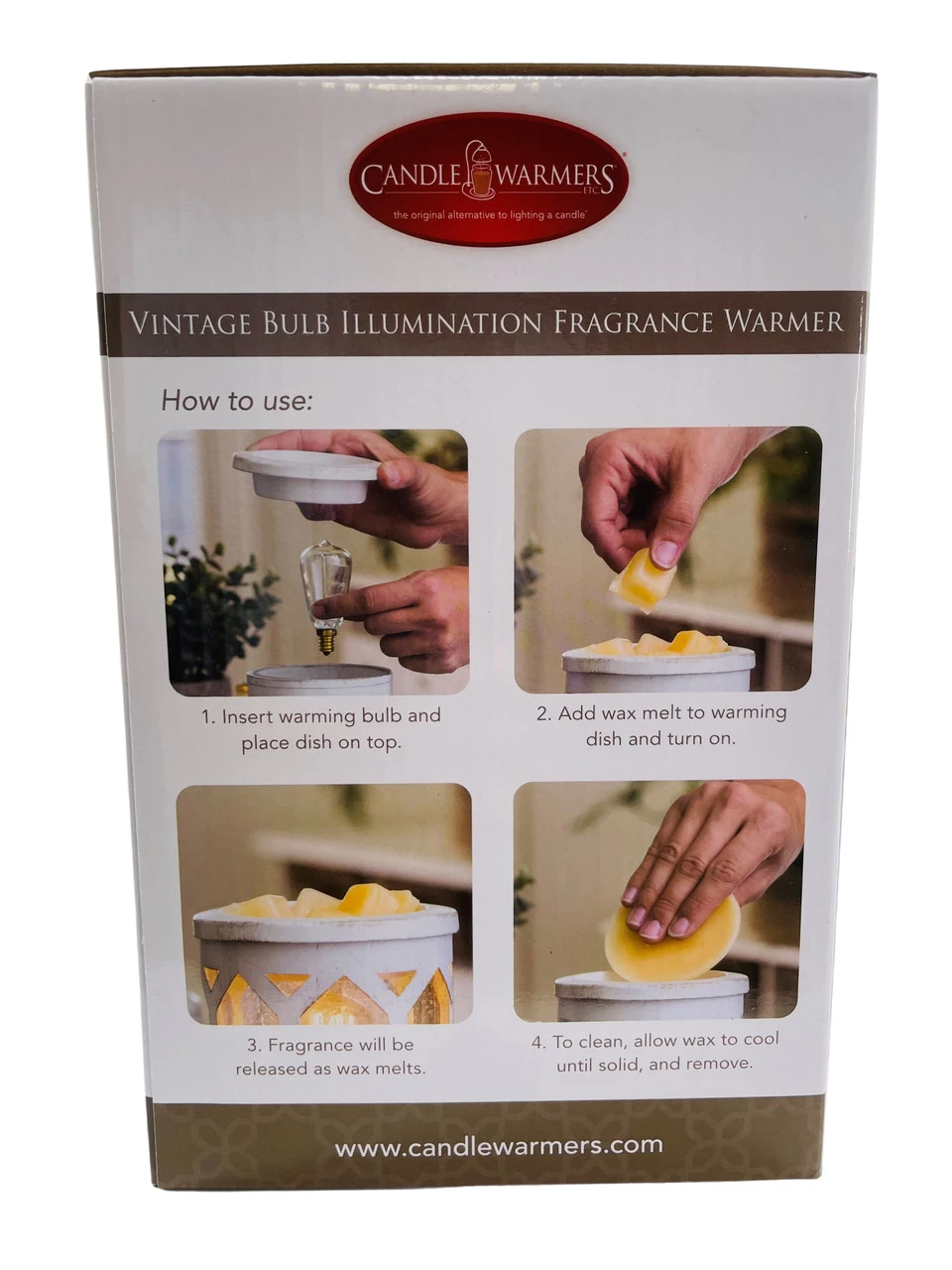 - FUNCTION: Decorative electric fragrance warmer designed to warm scented wax and create the ambient glow of a burning candle. Includes NP3 Vintage Bulb.