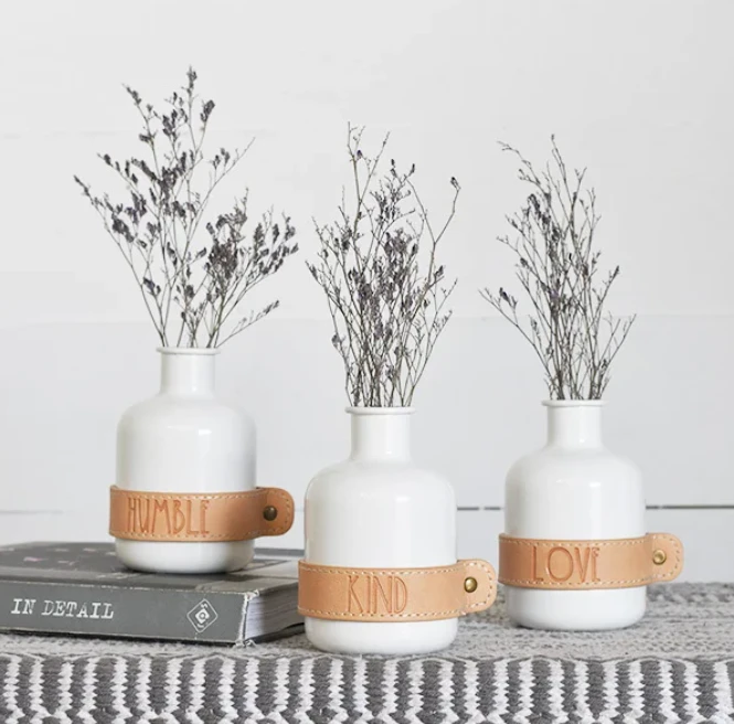 Ceramic Vase With Leather Band Sentiment, 3 Style Options