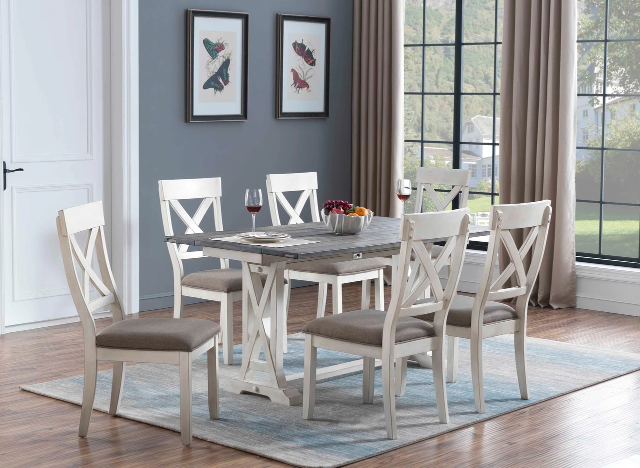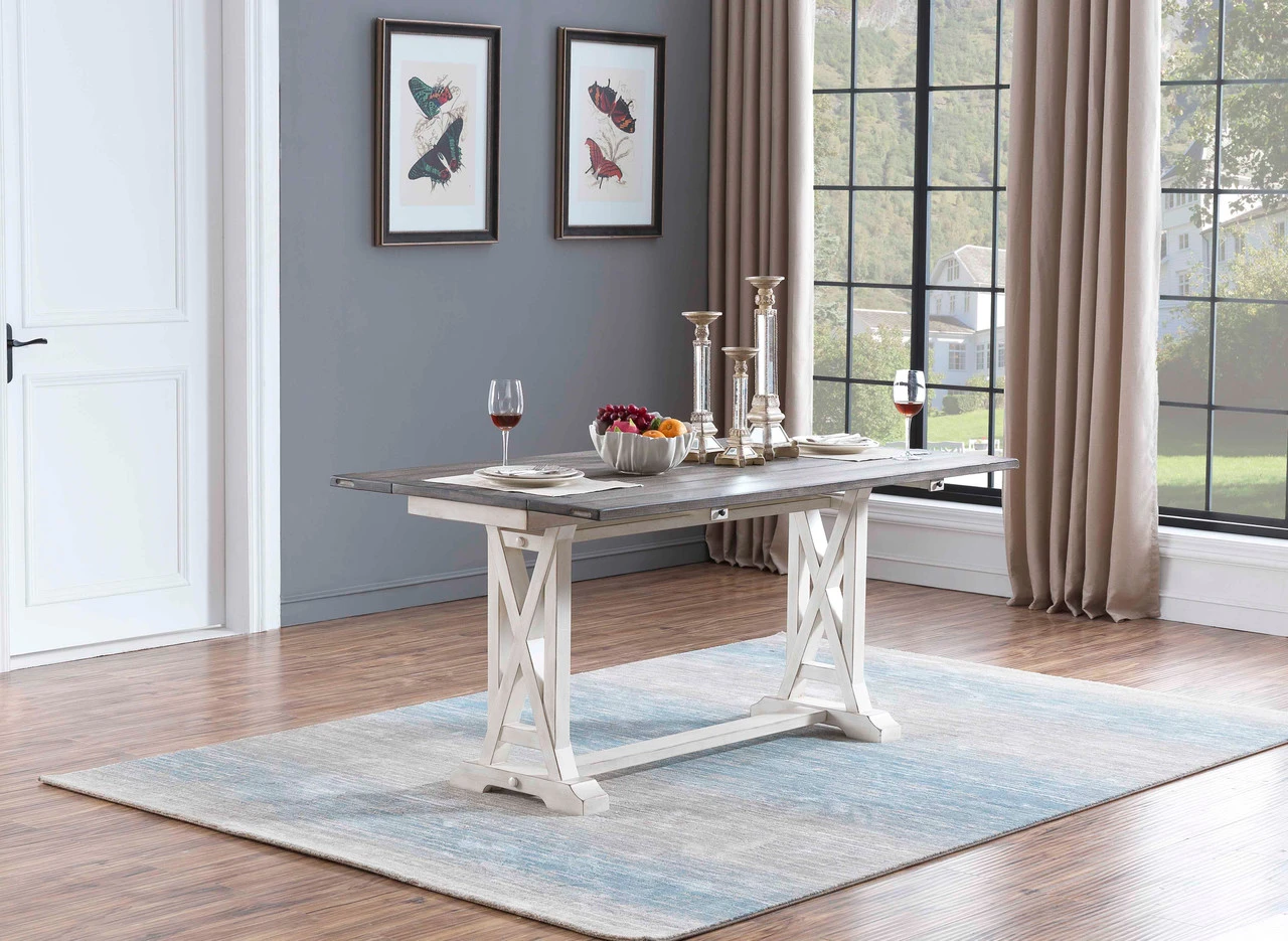 This console with stained wood finish top and creamy white finish bottom is a great piece for double use in the home. Use as console or sofa table and when extra dining is needed the top flips open to a nice 36″ x 64″ size for those extra party guests. The stylish base is casual yet elegant and will work with many decorating styles. Â