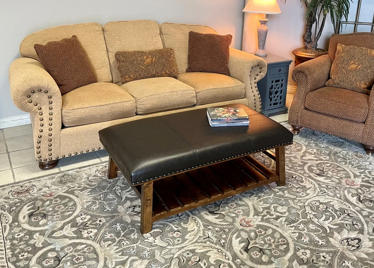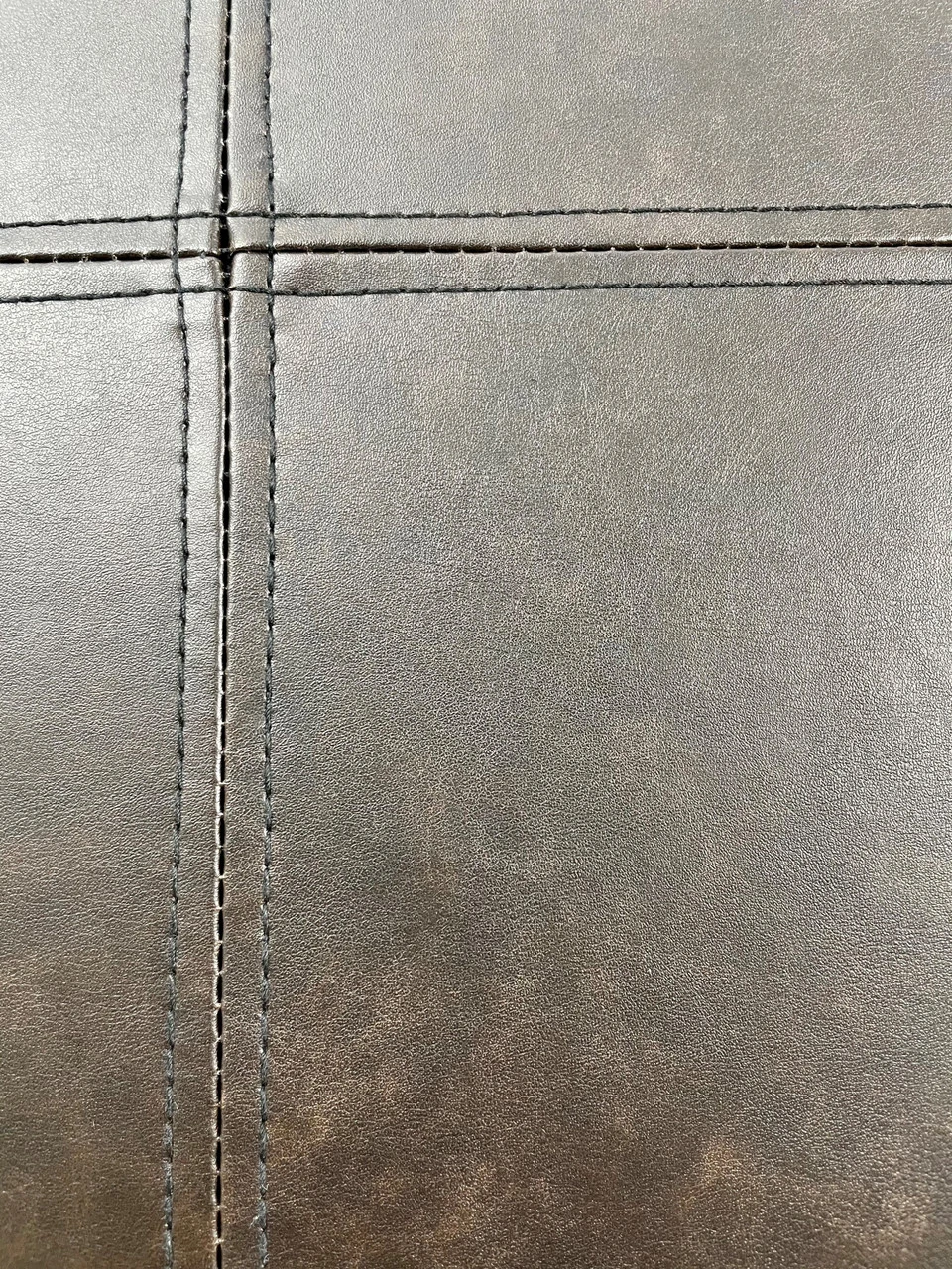 - Top Cushion Material: Faux Leather over Foam. Saddle Stitch detailing
