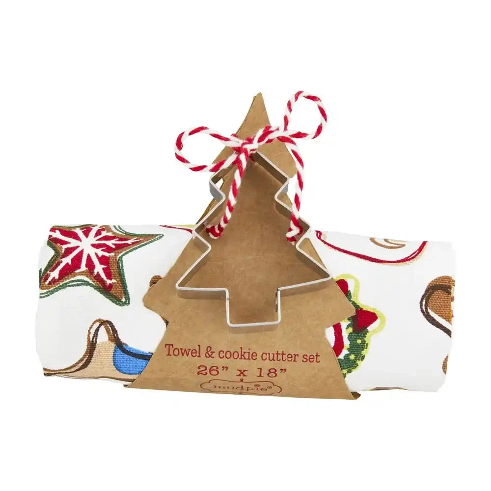 You’ll be baking memories with our Christmas cookie towel and cookie cutter set. The two piece set comes with a cotton hand towel. The hand towel features images of various Christmas cookies. The set also comes with a metal cookie cutter that is in the shape of a Christmas tree.
