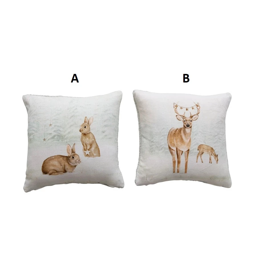 Cotton Printed Slub Pillow With Forest Animals And Bouclé Fabric Back, 2 Style Options
