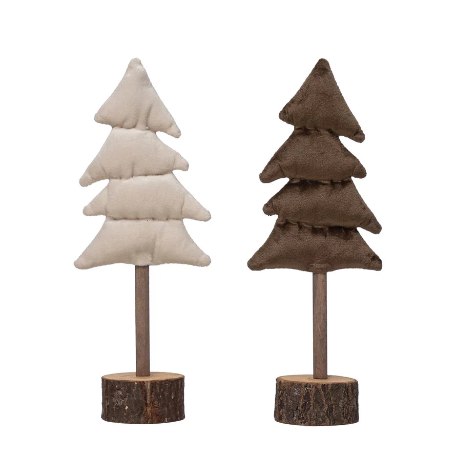 Cotton Velvet Tree With Wood Base, 2 Color Options