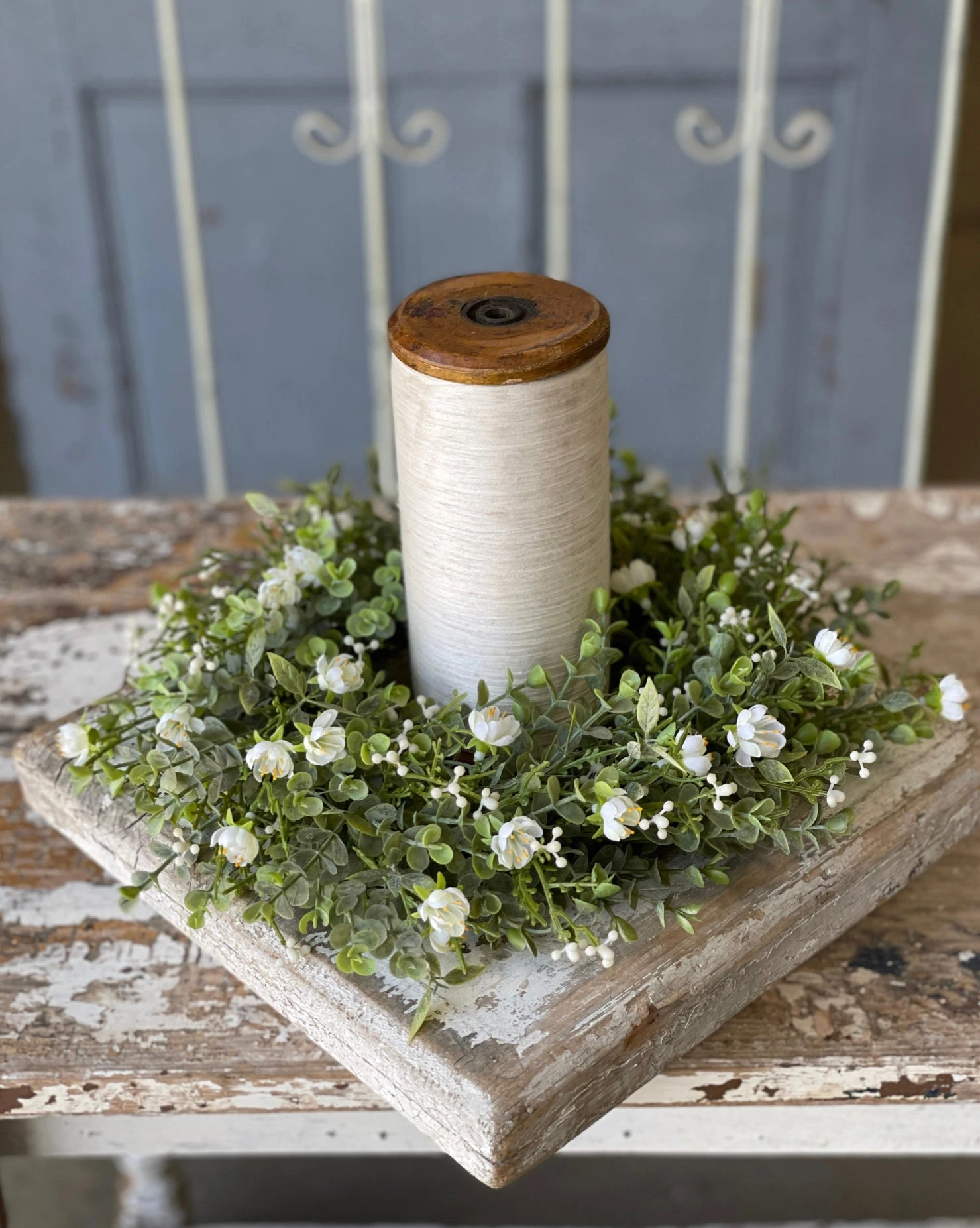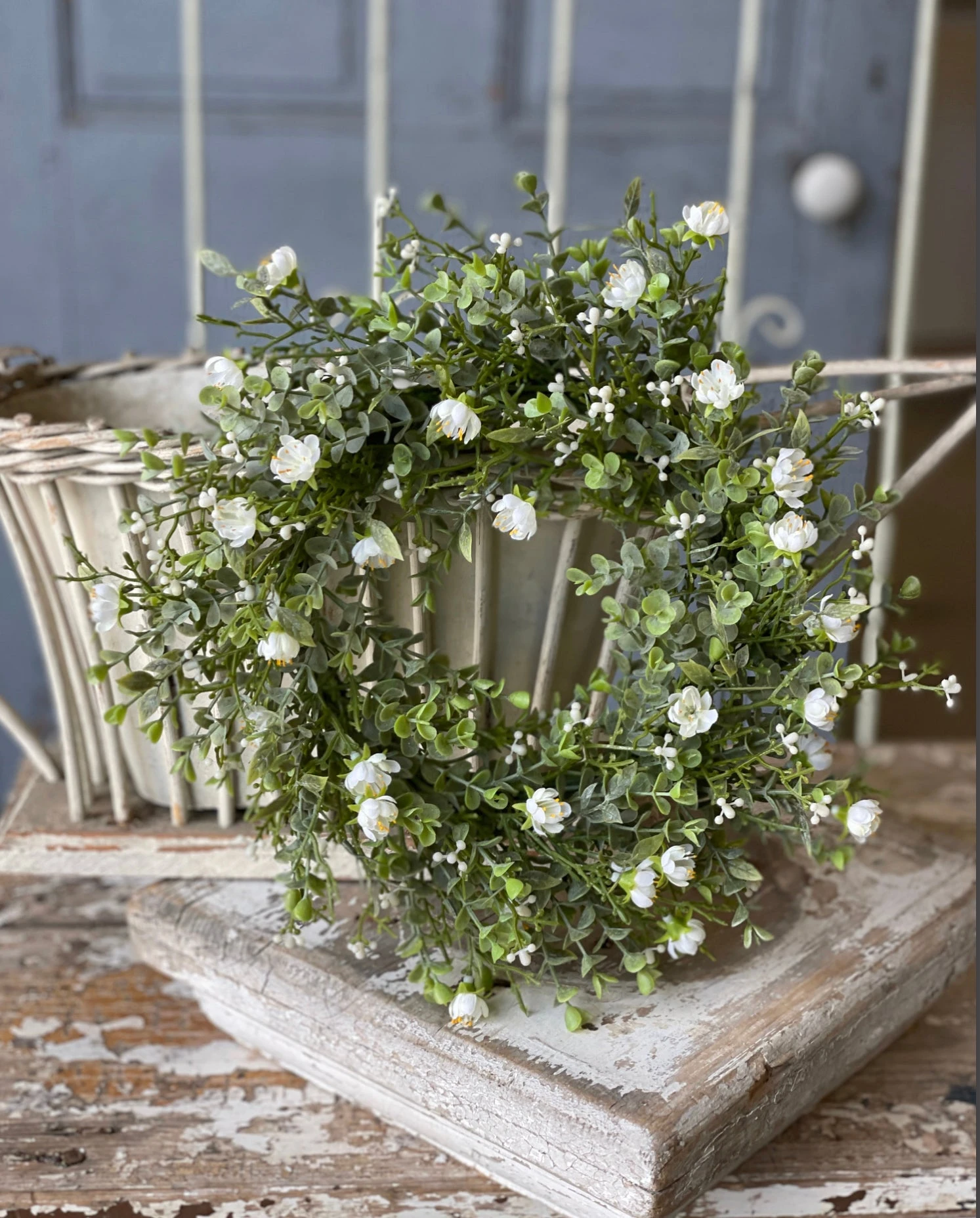 This collection features mixed greenery interspersed with dainty white blooms and small orbs. Creates a delicate and timeless feel.