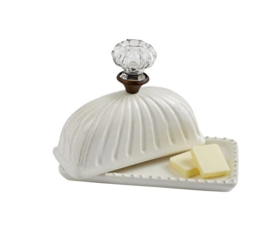 2-piece set. Ceramic butter dish features lid with vintage inspired glass door knob.