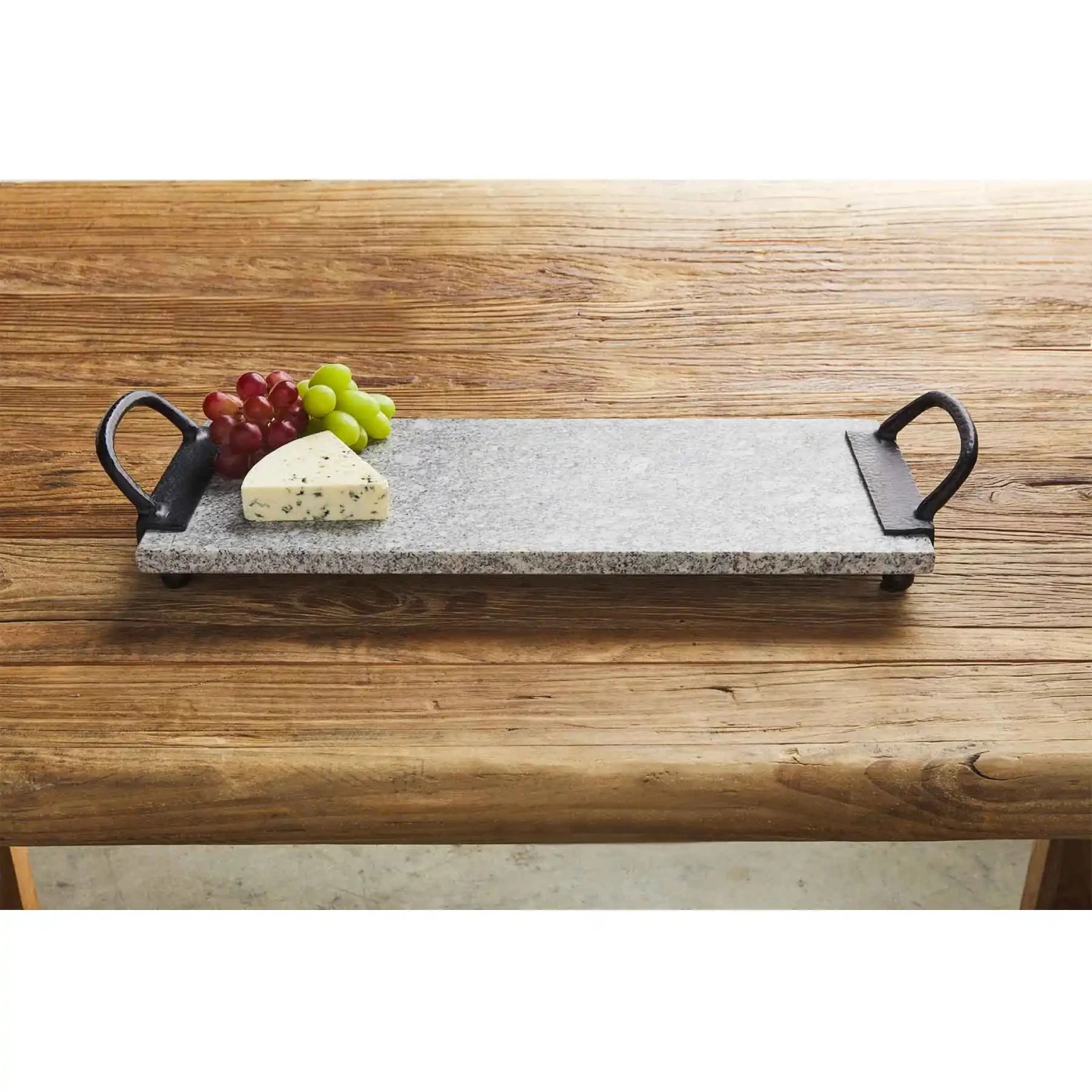 Display your insta-worthy creation on our Granite Handle Serving Board. The granite board features cast iron side handles. The tray also sits on ball feet. This board is perfect for any event – add your favorite snacks for happy hour or your favorite sweets for dessert on this board.