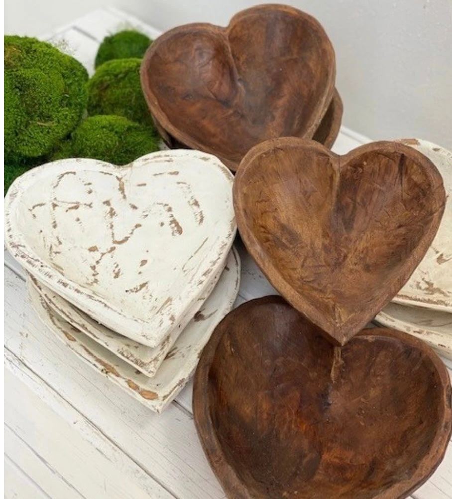 Heart Shape Carved Wood Bowl, Small