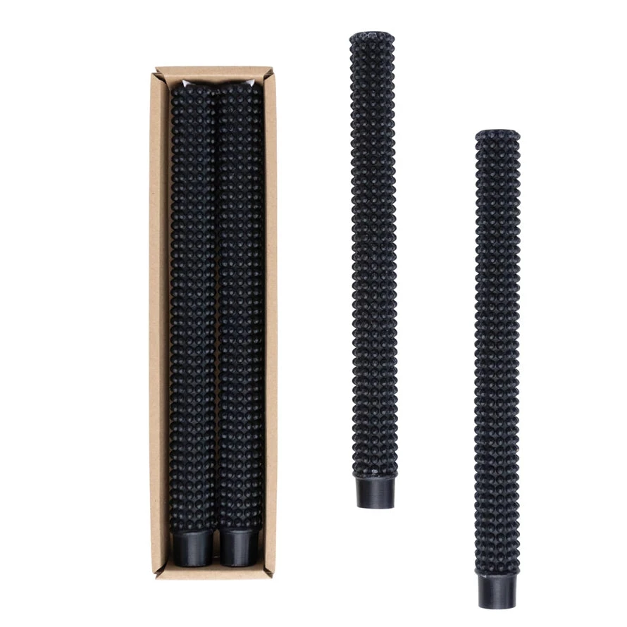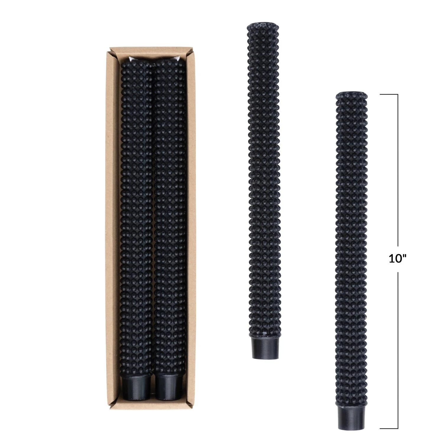 Hobnail Taper Candles, Black, Boxed Set Of 2