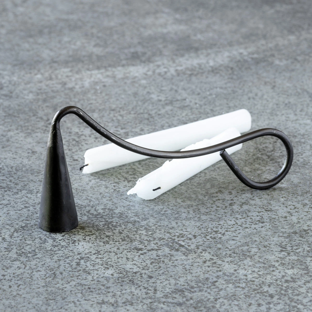 Our primitive candle snuffer in a sleek, modern silhouette of forged iron is as beautiful as it is functional. Comes in matte black finish.