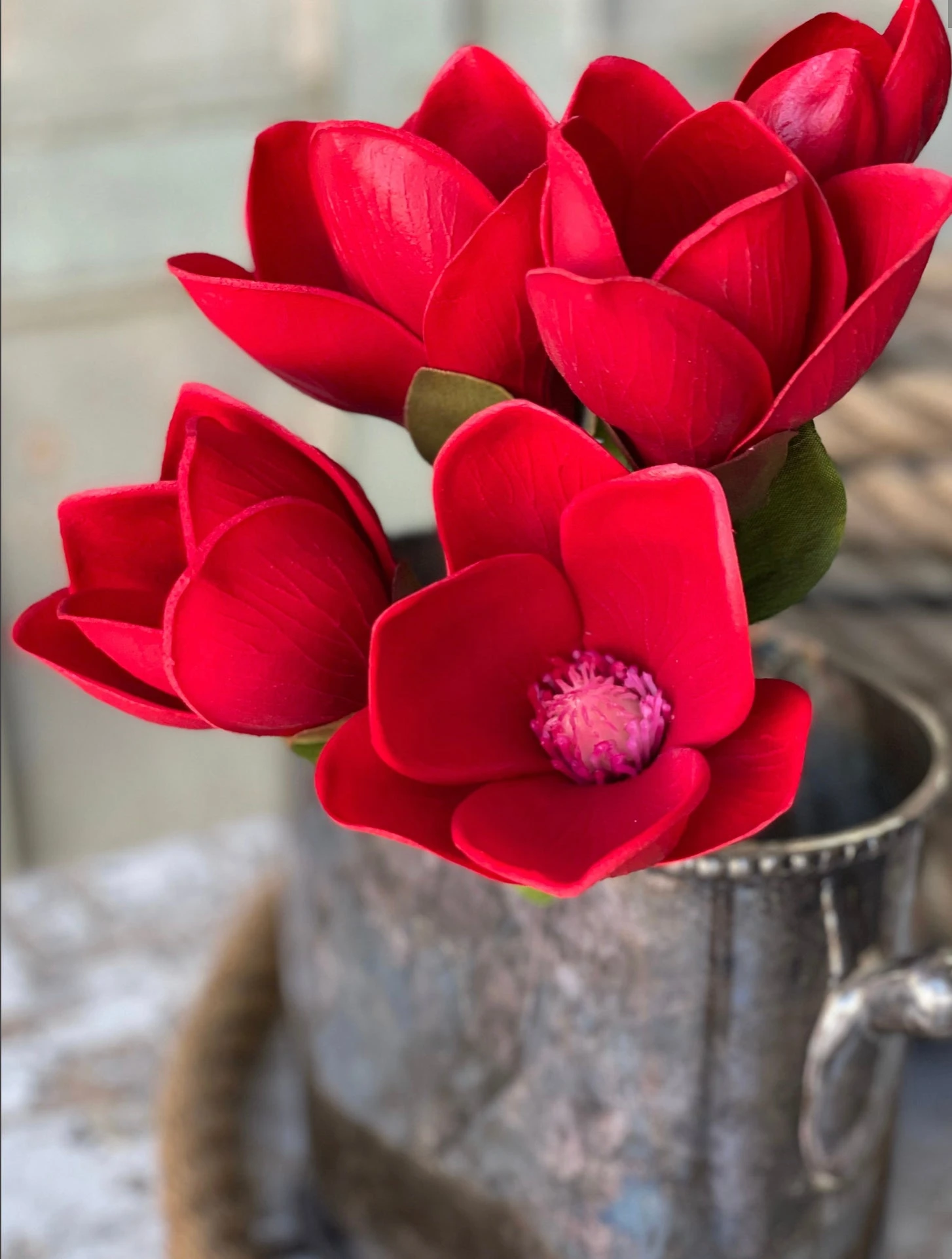 Jane Magnolia Bundle, Real-Touch Blooms, Scarlet, 13″