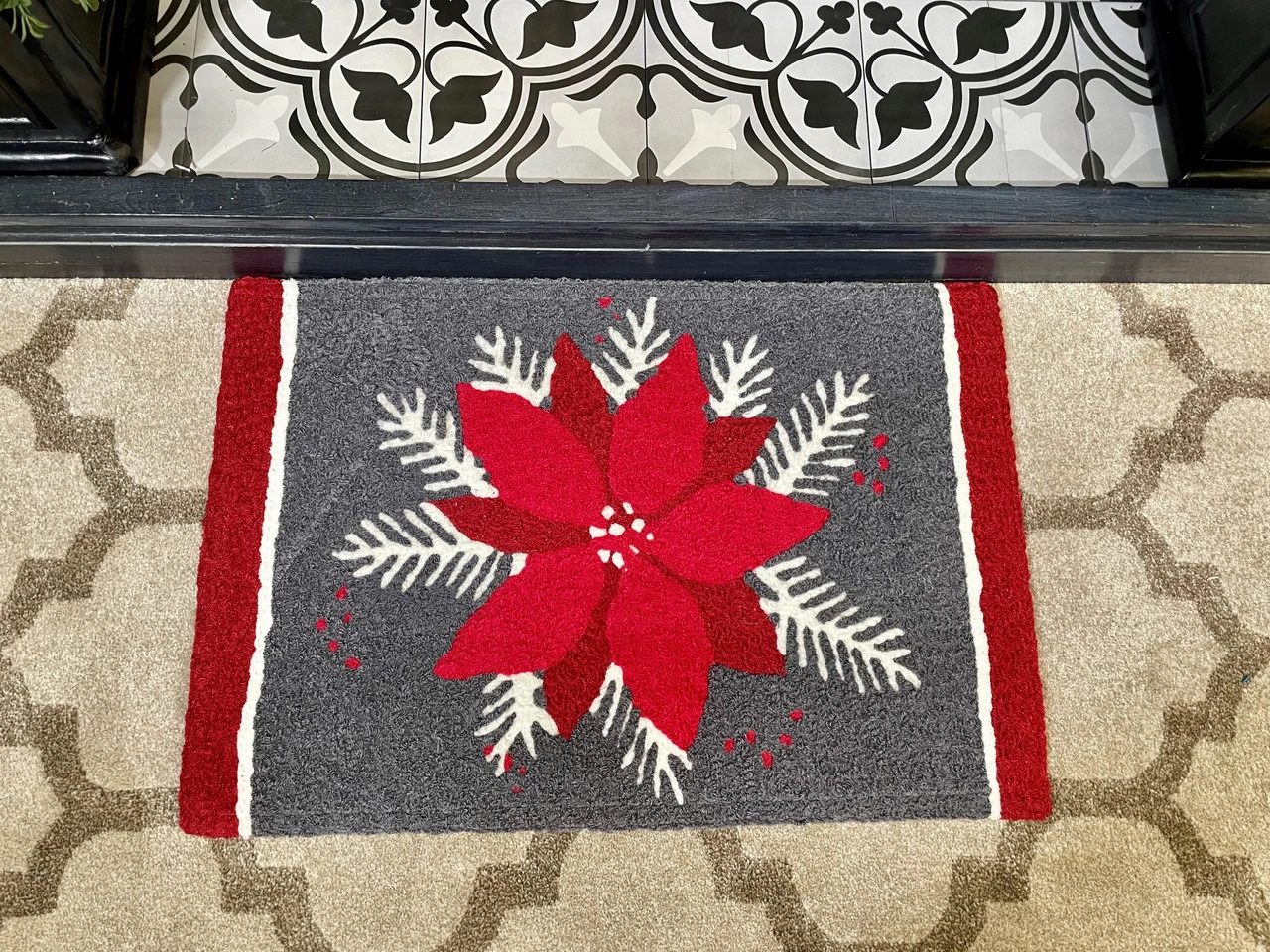 Jellybean Rug Poinsettias On Gray