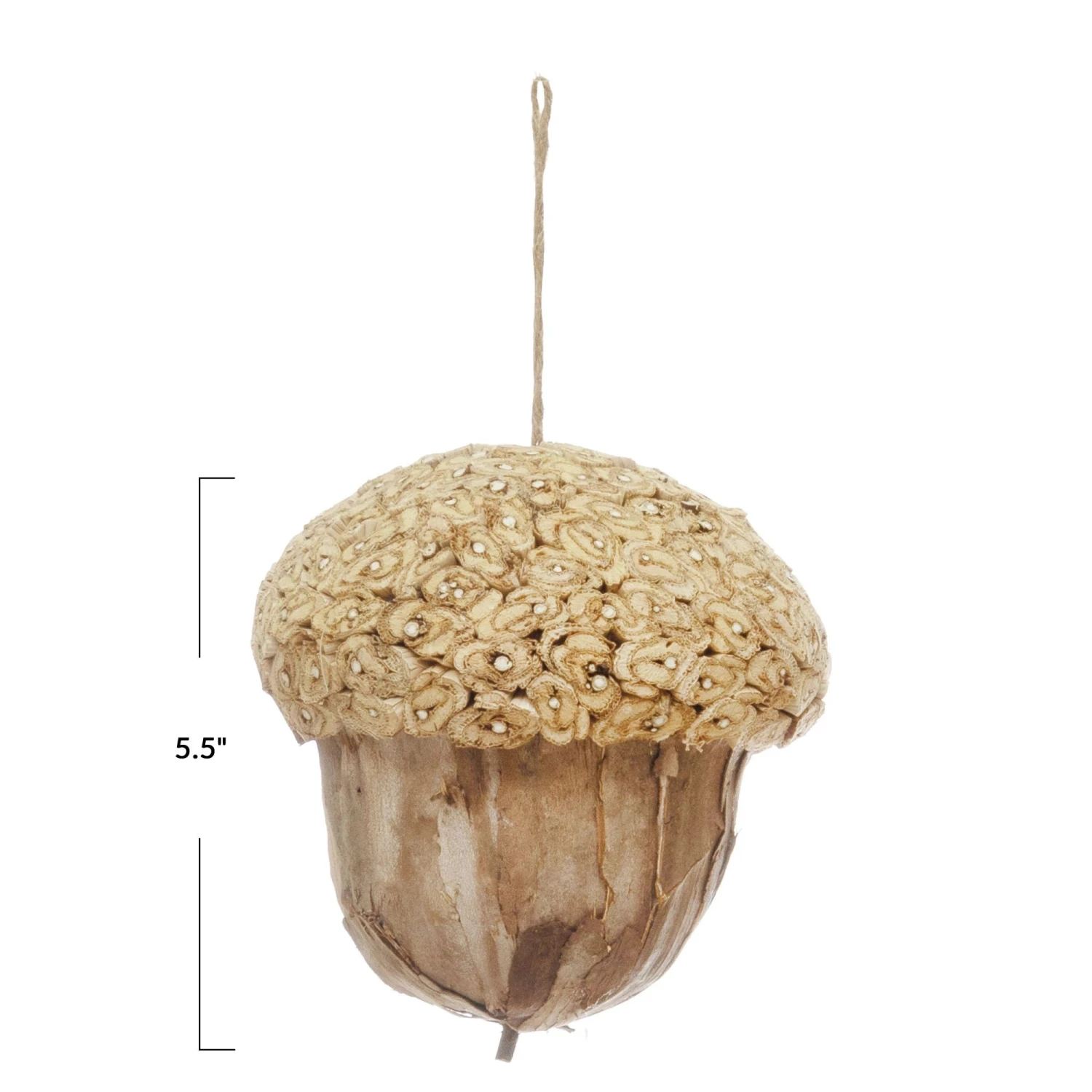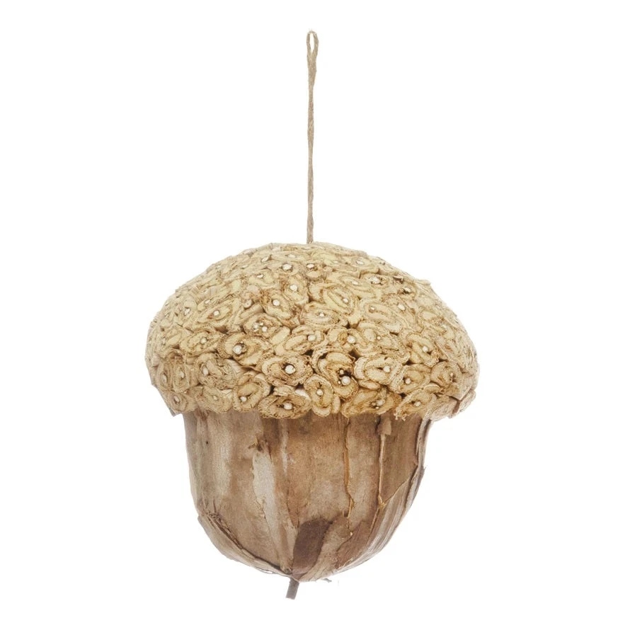 This acorn ornament can be used for a stylish fall tablescape, or for a nature-inspired Christmas tree. Made out of jujube bark, this acorn ornament features a natural color that matches perfectly with the nature style. Can be used as a fall or Christmas decoration, and adds a pop of nature to any home.