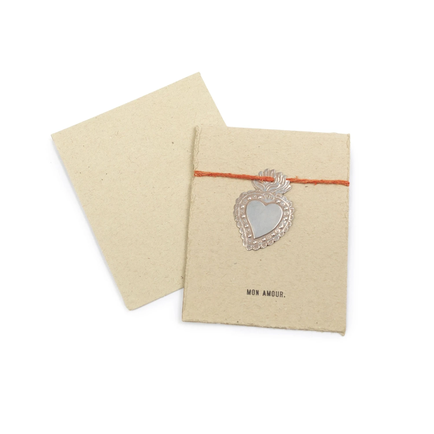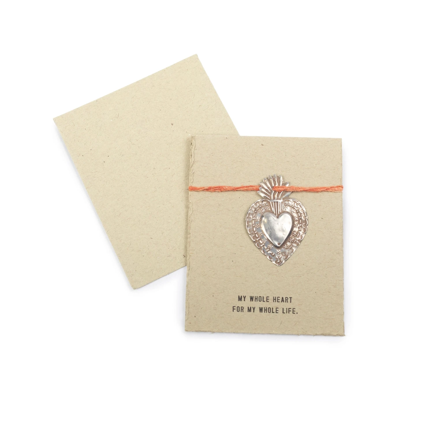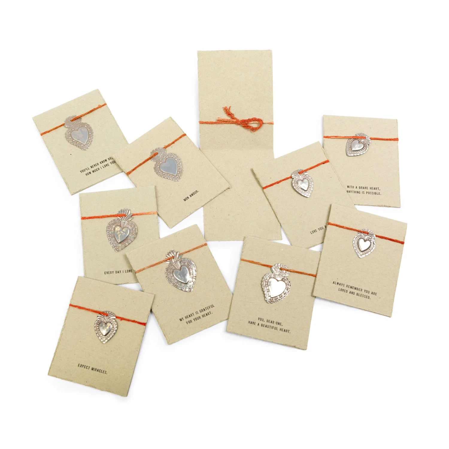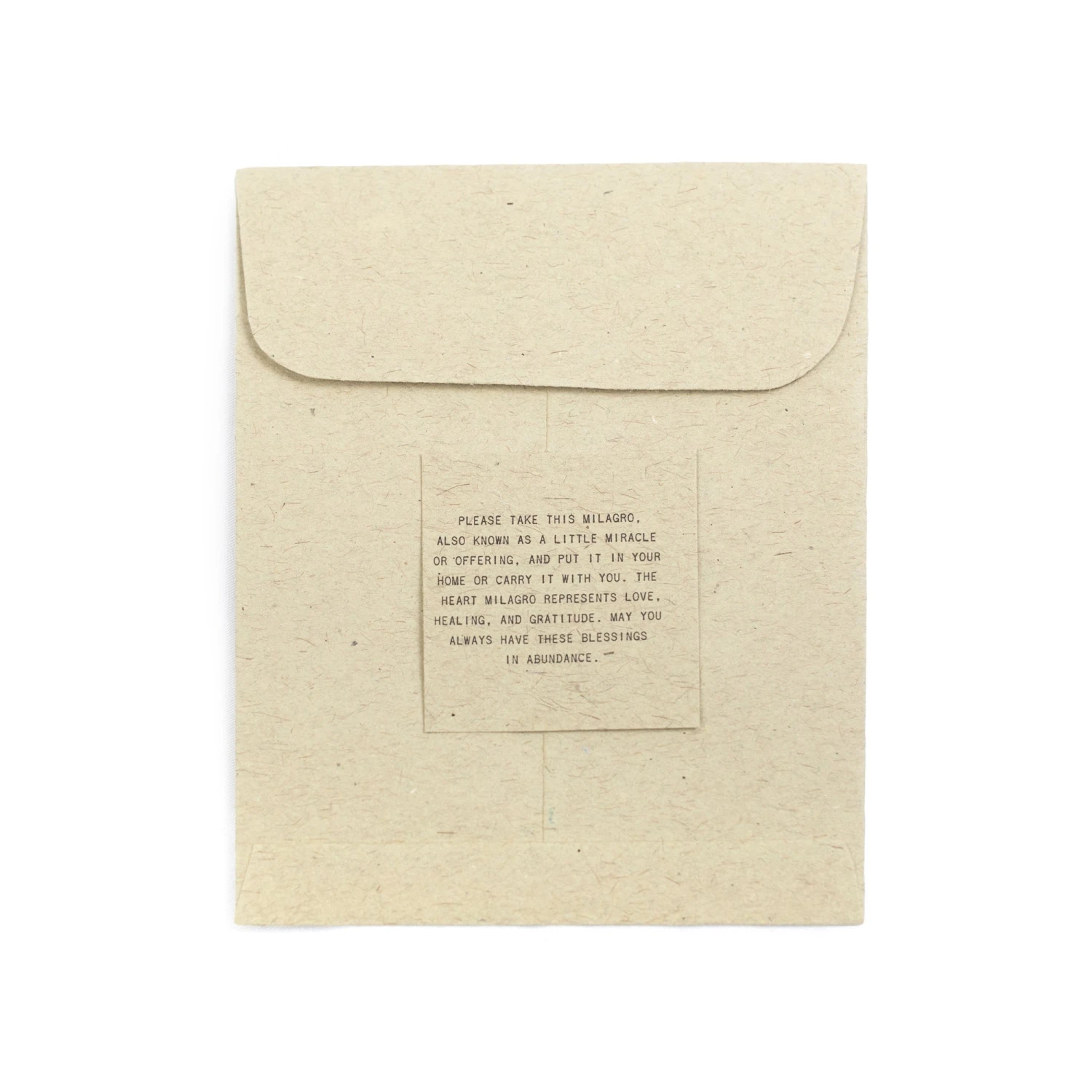 Each milagro is made of mild steel and based off of found original milagro heart molds. They are finished by hand forging and polishing so each milagro will be a little different and natural variations will occur. Handmade in India.