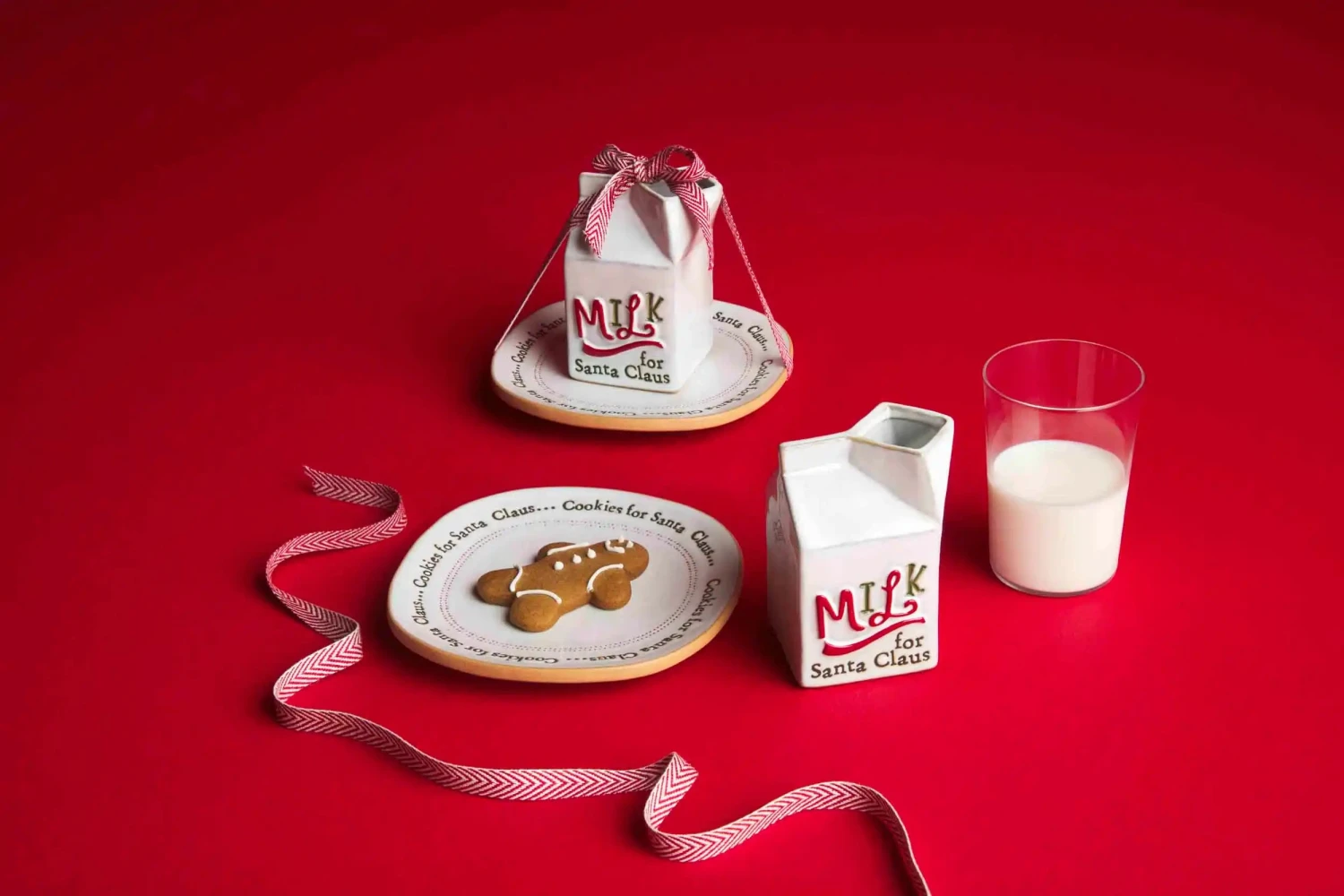 Leave out milk and cookies for Santa with our Milk and Cookies for Santa Set. The two piece set comes with a textured glazed stoneware milk carton. The milk carton comes with a coordinating cookie plate. The carton reads “Milk for Santa Claus” and the plate reads “Cookies for Santa Claus”.