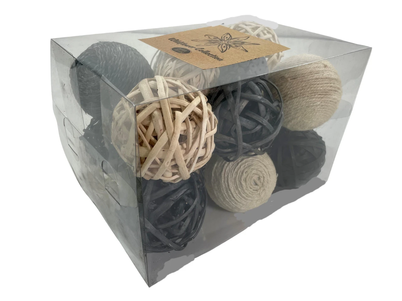 Add texture, color, and shape to your indoor designs with this jumbo carton of mixed orbs. Ranging in size from two to four inches these orbs in a mix of gray, black, and natural will look great in a bowl, large clear container, or to create interest in an arrangement.Â