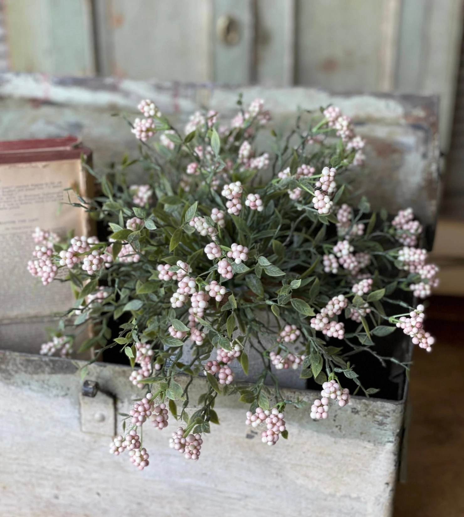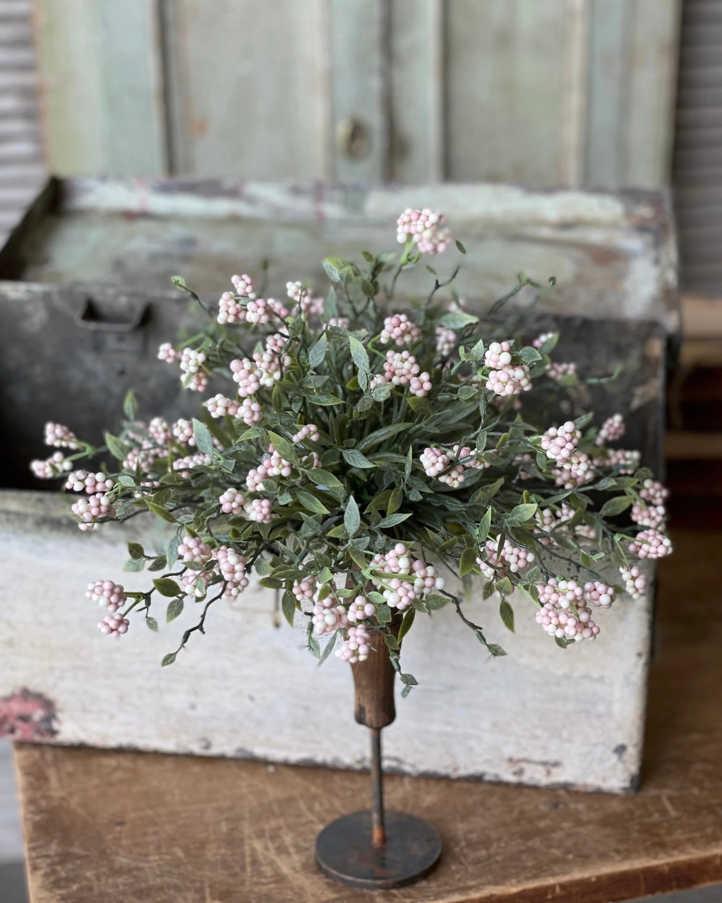 A lively collection made up of colorful berry clusters that spring from arching stems punctuated with small leaves. Has a cheerful and airy feel.