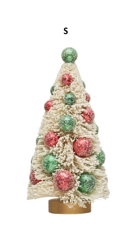 Sisal Bottle Brush Trees With Red & Green Ornaments, Cream, 2 Size Options
