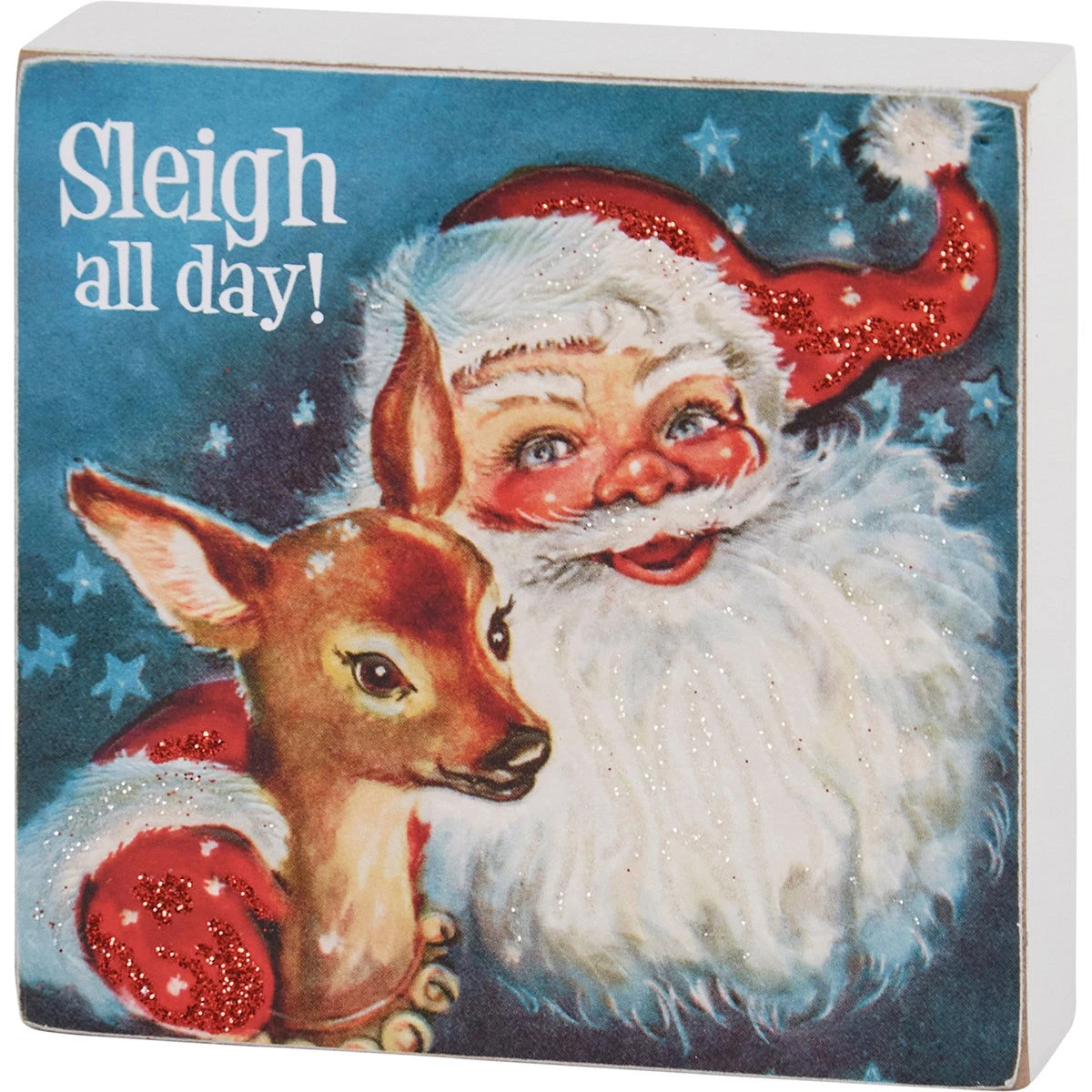 “Sleigh All Day” Santa & Reindeer Block Sign