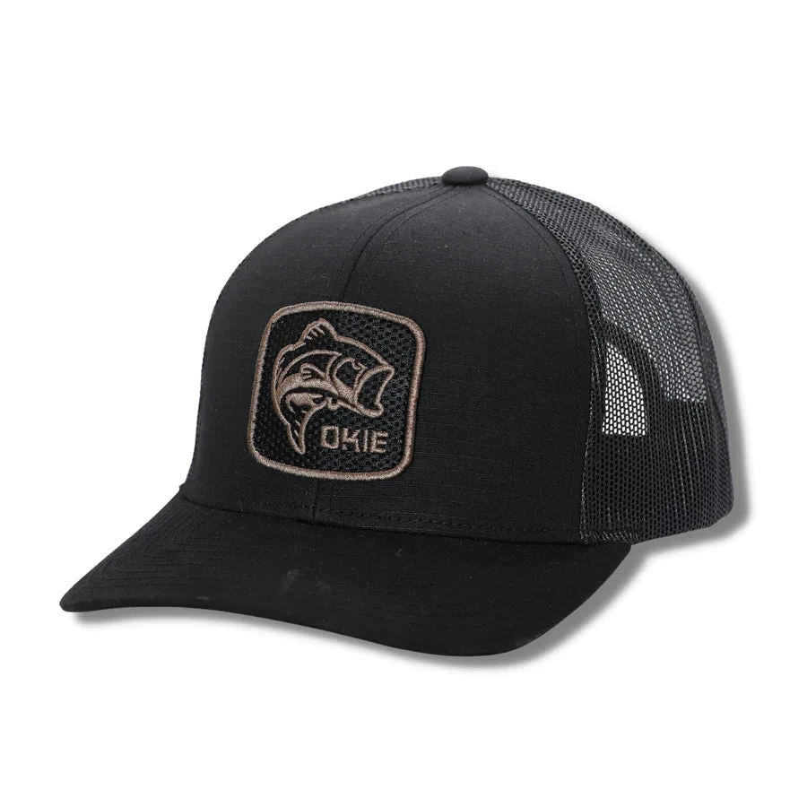 Ripstop material, black mesh snapback hat.