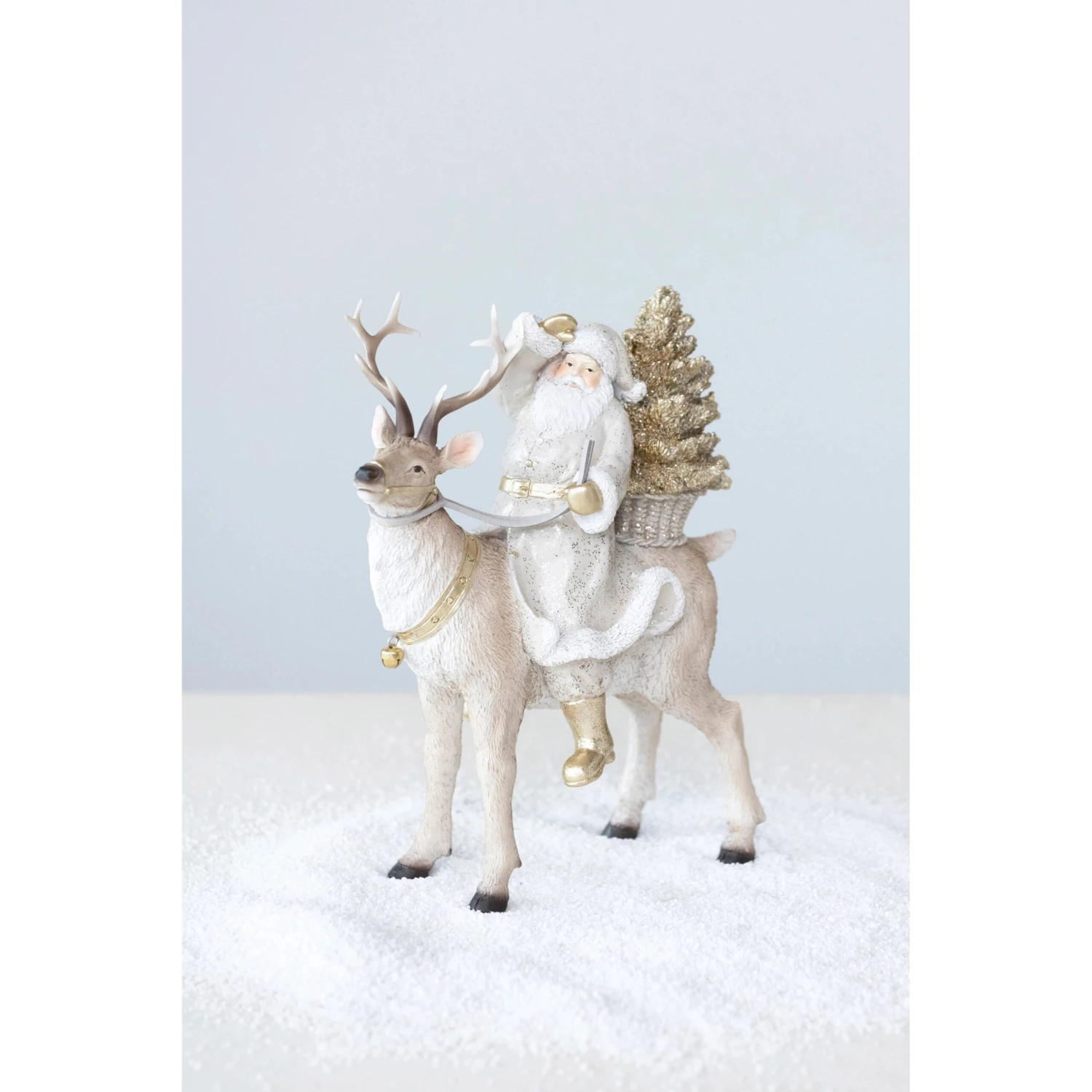 White Deer With Glitter Santa & Tree