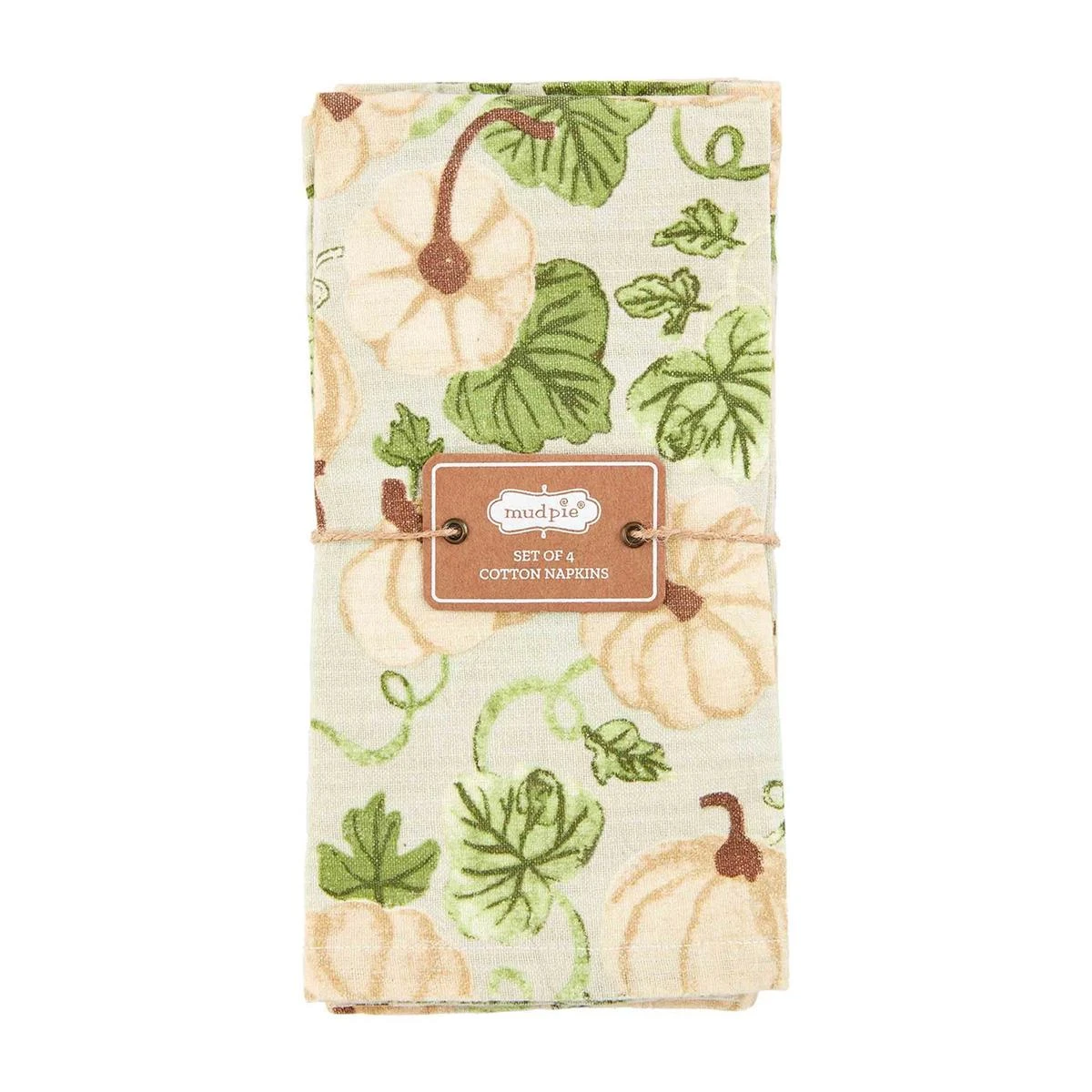 White Pumpkin & Vines Cotton Dinner Napkin Set Of 4 By Mud Pie